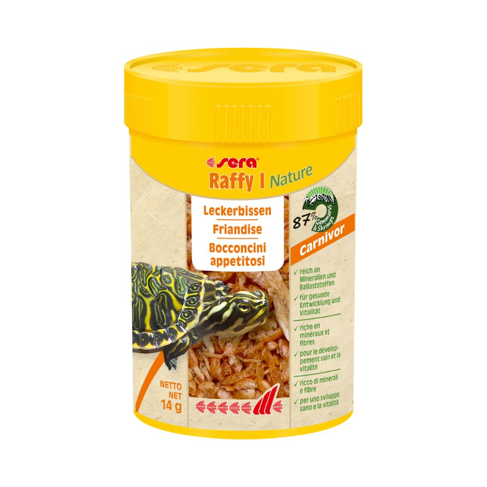 Sera Raffy I Nature 100 ml è un mangime naturale per tartarughe e rettili carnivori, ricco di proteine e senza conservanti. Un’alimentazione equilibrata e sana per i tuoi animali!